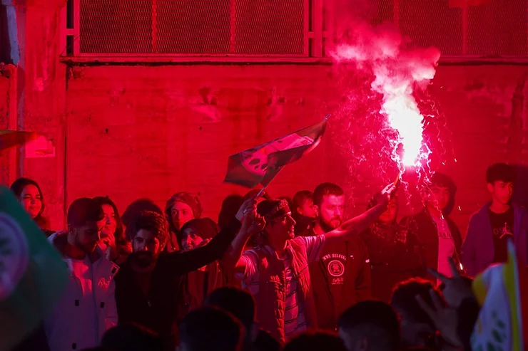 El primer día, tras nuestra llegada, ya fue inolvidable. Tuvimos la increíble oportunidad de vivir las celebraciones del Newroz en Amed, la “capital de los kurdos”. No podía haber un lugar mejor para celebrar este día. En el día del Newroz, el pueblo kurdo demuestra que su cultura y su convicción política de autogestión democrática siguen más vivas que nunca, a pesar de la masiva represión. Aunque el Estado turco se hizo presente y trató de demostrar su poder con el empleo de cañones de agua en todas partes de la ciudad y con incontables agentes de policía, así como soldados con armas, miles de kurdos acudieron a las celebraciones. Lo que ocurría en el escenario, donde los representantes del Partido DEM pronunciaban discursos y actuaban cantantes, era modesto en comparación con la multitud que formaba grandes círculos halay cantando todo el tiempo. Los internacionalistas nos sentimos muy bien acogidos por la gente. Nos invitaron a bailar, nos enseñaron a cantar varias canciones, nos ofrecieron cigarrillos y nos dieron banderas para ondear. Poder sentirme como en casa, sentirme profundamente a gusto, aunque en un entorno completamente ajeno y nuevo, fue una experiencia totalmente inusual para mí. No sólo tuve la oportunidad de observar, sino también de formar parte de otra cultura. Siempre llevaré esta atmósfera conmigo.