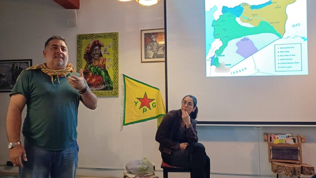 El 13 de diciembre en el centro cultural Sendas en San Cristobal de las Casas, en el sureste deMéxico, una treintena de personas se congregaron para escuchar sobre los últimos acontecimientos en Siria y Rojava.