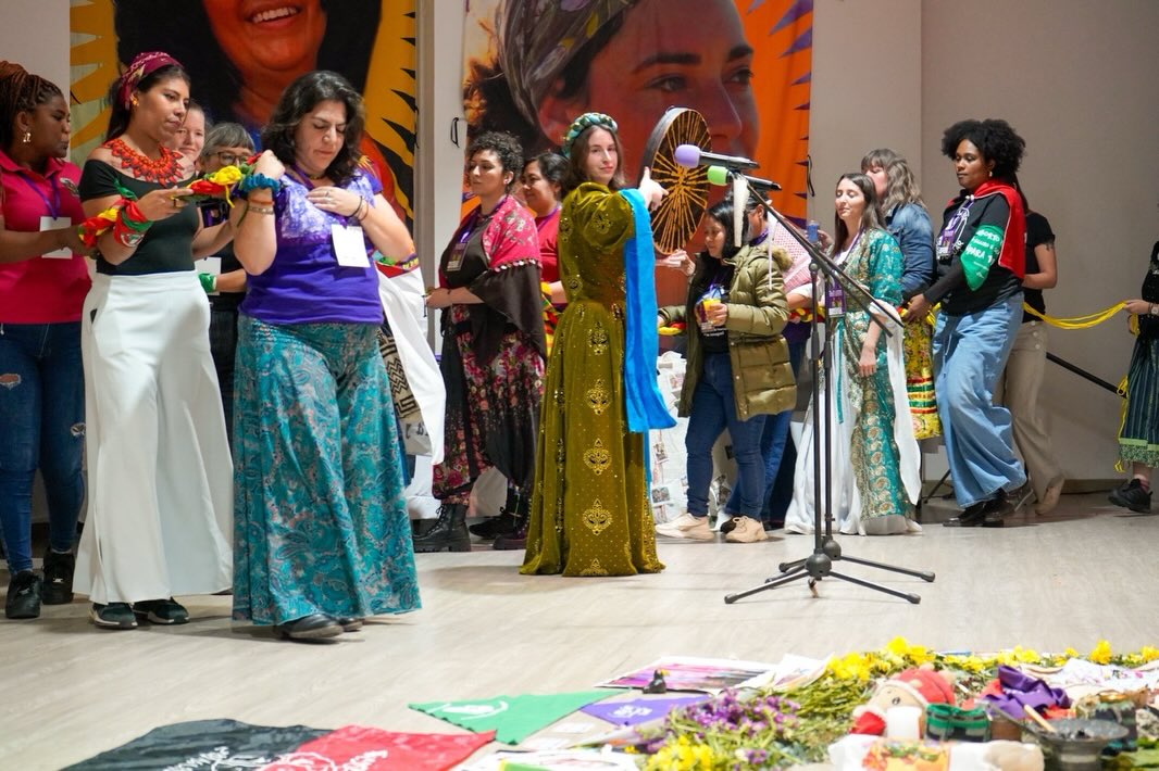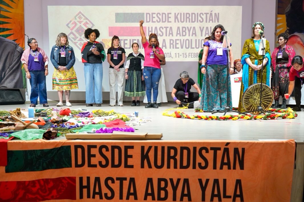 Por Colectivo Sin Permiso* – Del 11 al 15 de febrero se realizó en Bogotá, Colombia, el encuentro internacional “Floreceremos porque la guerra no puede acabar con nuestras raíces. De Abya Yala hasta Kurdistán la lucha de las mujeres frente a la destrucción de la vida”, en el que participaron cuatrocientas representantes de todo el mundo.