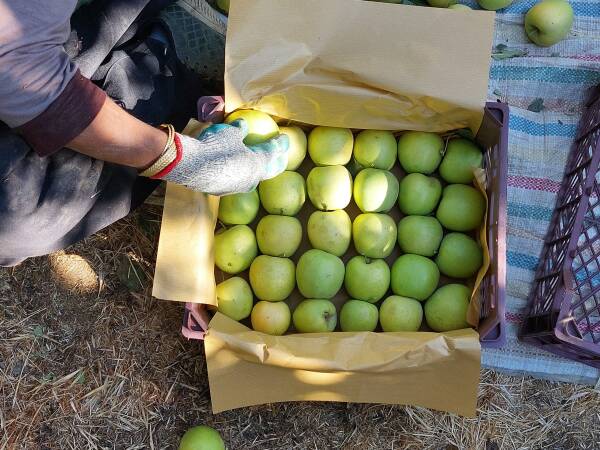 Otra temporera, Fatmeh M., quien empezó a trabajar por primera vez este año, destaca las dificultades del trabajo: “Empezamos a trabajar a las 6. Primero trepamos a los árboles para recoger las manzanas, luego recogemos las que se han caído y separamos las buenas de las malas. Hacemos este trabajo durante aproximadamente un mes, y la cosecha de manzanas debe estar terminada”.