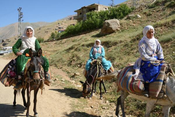 En la provincia de Van (Kurdistán turco, Bakur), las mujeres se dedican a la agricultura estacional de las tierras altas en las condiciones más adversas. En el distrito de Bahçesaray, al que sus habitantes llaman jocosamente el “noveno planeta” debido a su lejanía, muchas mujeres pasan hasta cuatro meses al año en las tierras altas, principalmente a lomos de mulas, debido a la falta de caminos transitables.