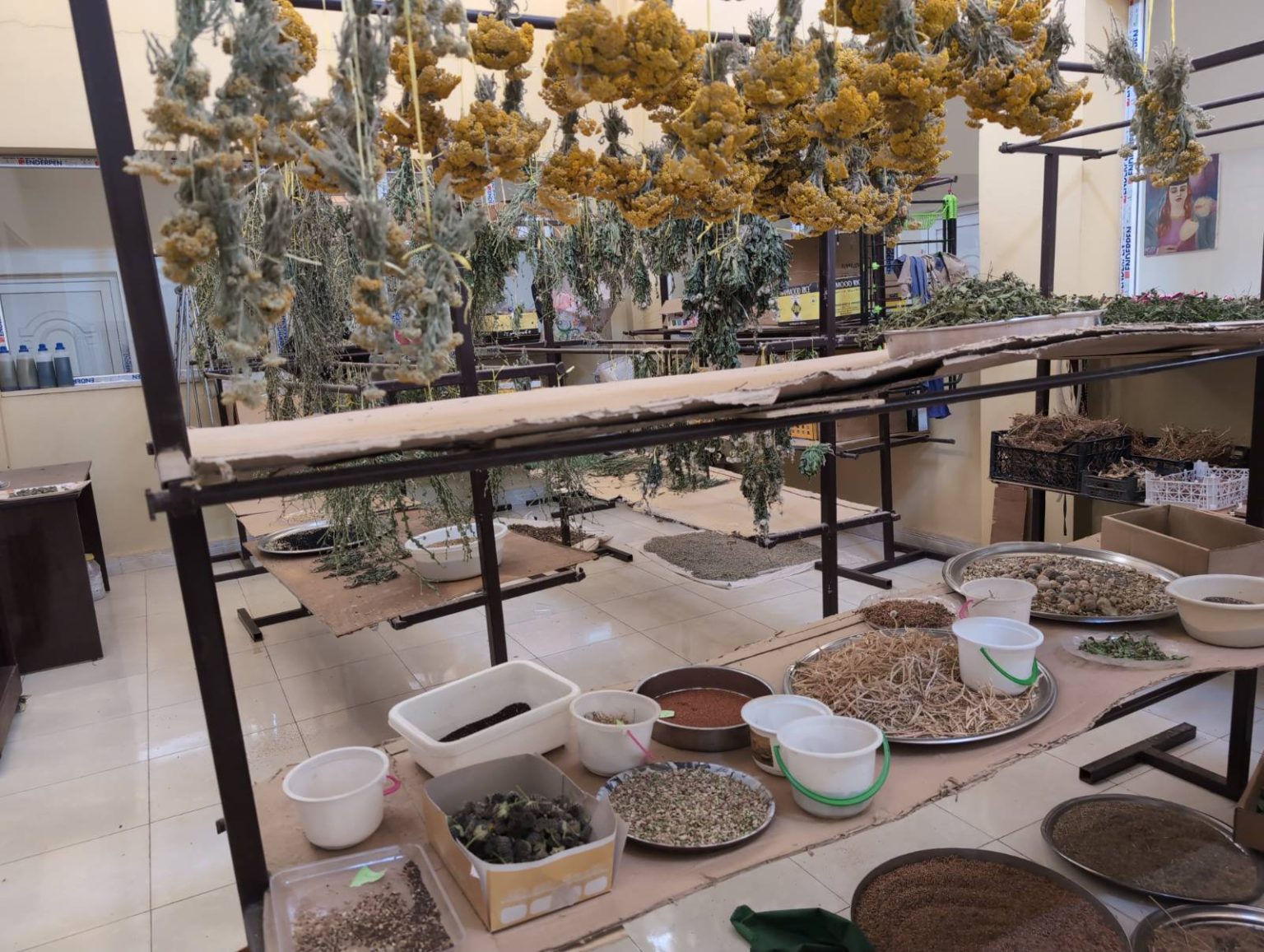 Es verano: tiempo de cosecha. En el Centro de Salud Natural Navenda Jiyan se recolectan semillas todos los días. Se riegan las plantas, se alimenta a las abejas, se cosechan las papas y se recogen diligentemente las flores y las hojas. Los resultados de este laborioso trabajo se observan en la sala de secado, donde las plantas se secan lentamente para ser utilizadas con fines medicinales por el propio centro. Otros artículos se procesan directamente para obtener aceite o se destilan para extraer sus valiosos ingredientes.