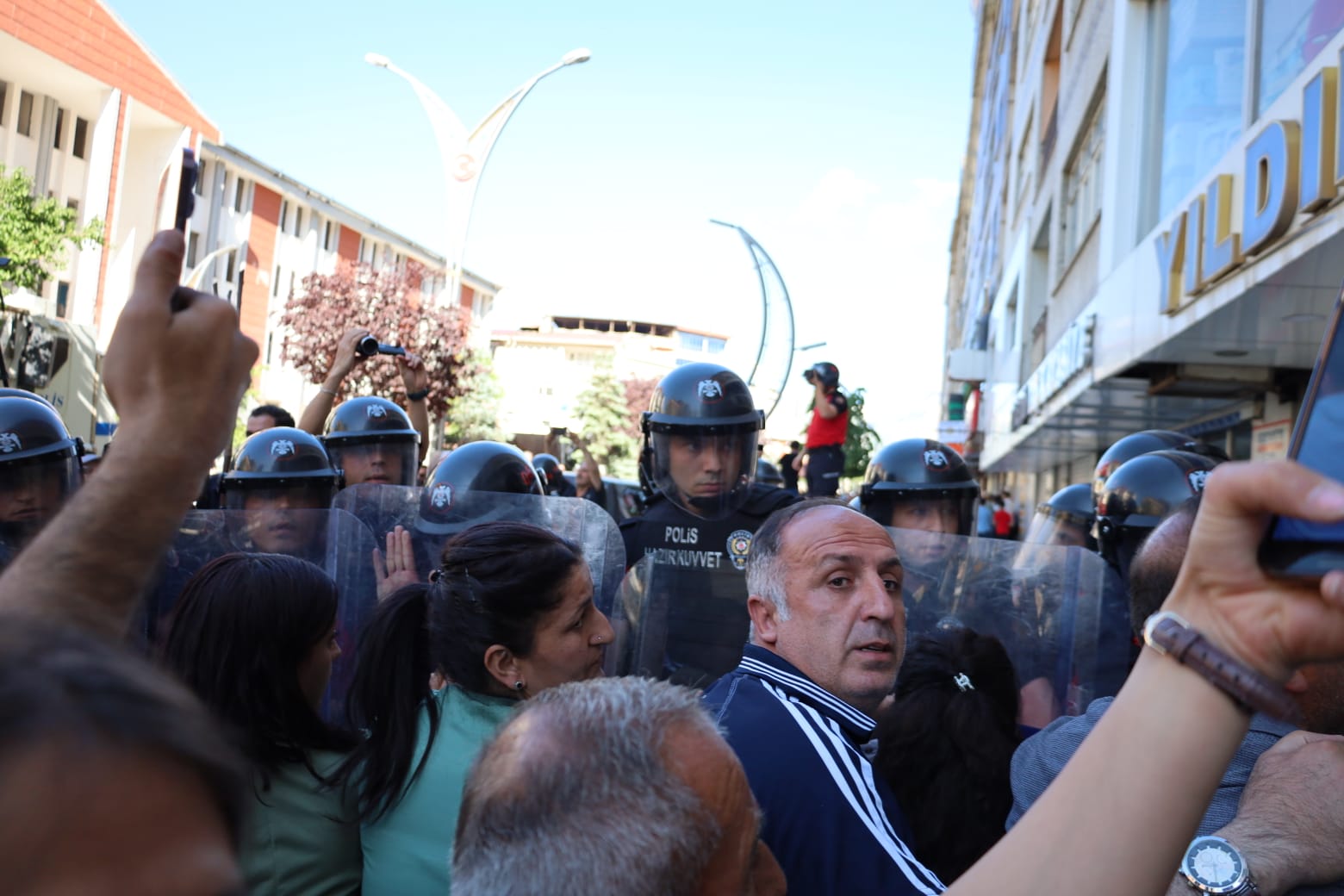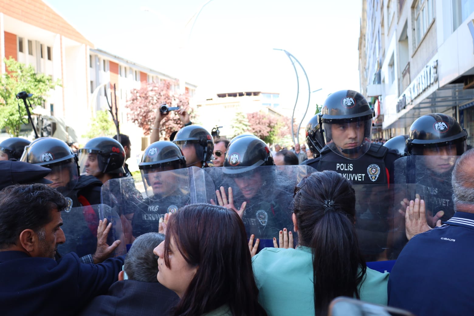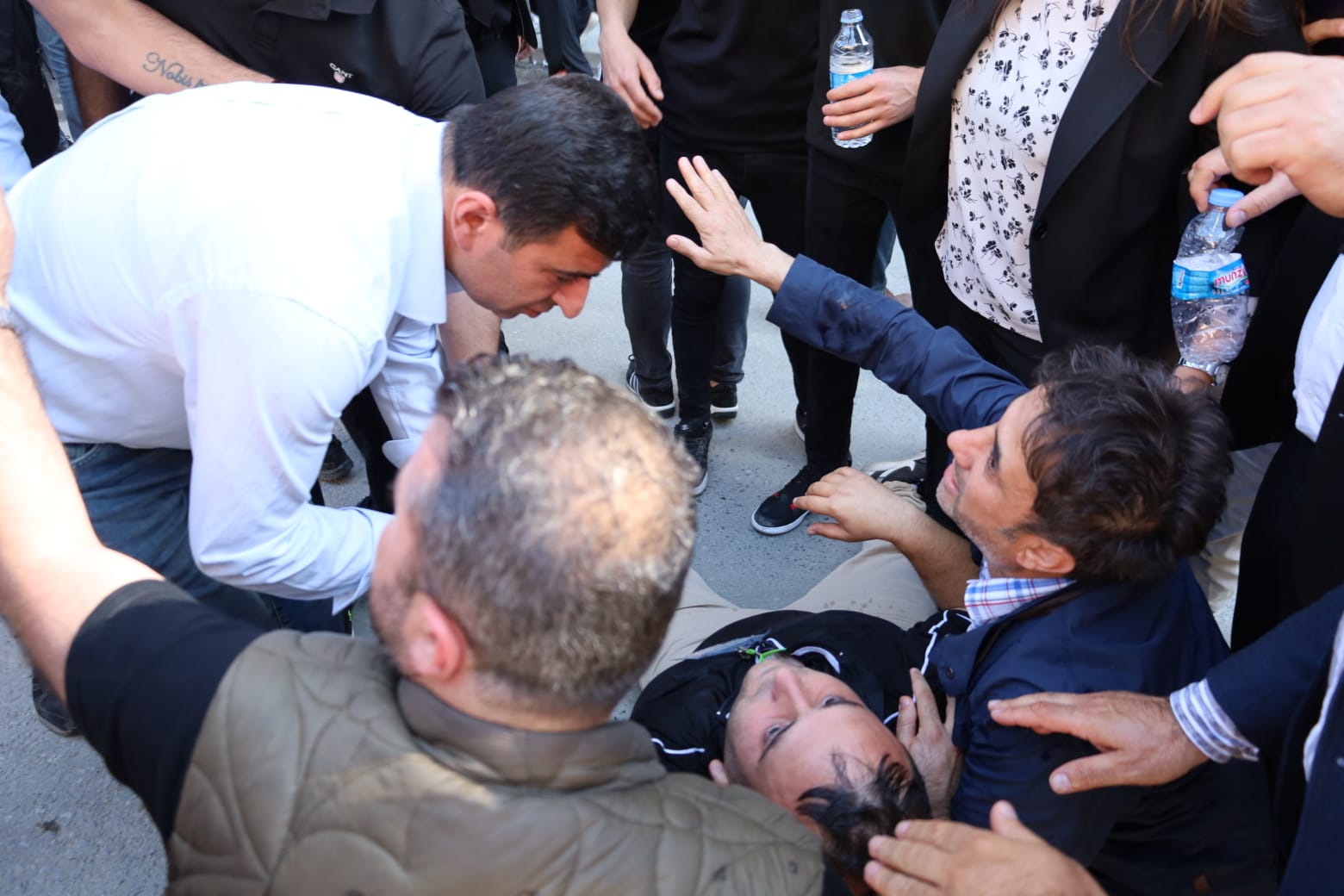 Las y los representantes políticos también brindaron una conferencia de prensa. Cuando finalizó, la policía cargó otra vez, atacando con cañones de agua y gas. Muchas y muchos parlamentarios fueron rociados directamente con gas. El periodista Nevroz Seyitoğlu se desmayó debido a la violencia policial.