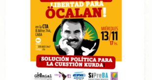 Hasta el próximo 23 de noviembre hay tiempo para sumar tu firma a la campaña latinoamericana por la liberación del líder kurdo Abdullah Öcalan, encarcelado en la isla-prisión de Imrali, en Turquía, desde 1999. La iniciativa lanzada de Argentina para toda América Latina ya sumó a más de 200 organizaciones sociales y políticas de todo el continente y como también …