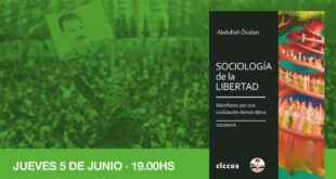 “Sociología de la libertad”, que es el tercer tomo de la obra del líder kurdo Abdullah Öcalan, fue publicado en Argentina por la editorial Ciccus. El próximo jueves 5 de junio, a las 19 horas, el libro será presentado en el Aula SG 106 de la Facultad de Ciencias Sociales de Buenos Aires (Santiago del Estero 1029). El libro es …