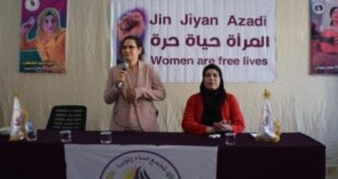 Como parte de la campaña “Con la solidaridad de las mujeres construiremos una Siria libre, democrática y descentralizada”, lanzada el 12 de octubre por el Consejo Comunitario de Mujeres Zenûbiya del cantón de Raqqa, se celebró una gran reunión con una amplia participación de mujeres. La reunión tuvo lugar en el pabellón deportivo del estadio de la ciudad de Raqqa …